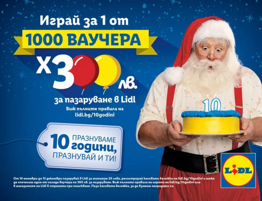 Това е още един подарък от веригата, която по повод 10-годишния си юбилей, наскоро предостави на своите клиенти мобилното приложение Lidl Plus. С него печели всеки дори да не участва в томболата за подаръчни ваучери. Освен Lidl Plus офертите и купоните, предлагащи различен тип отстъпки, апликацията дава възможност на всички, които го използват при пазаруване да получат скреч карта, предоставяща допълнителна възможност за купон с отстъпка. Пълните правила на предпразничната томбола може да откриете на lidl.bg/10godini, а повече за приложението може да научите на: https://www.lidl.bg/lidl-plus