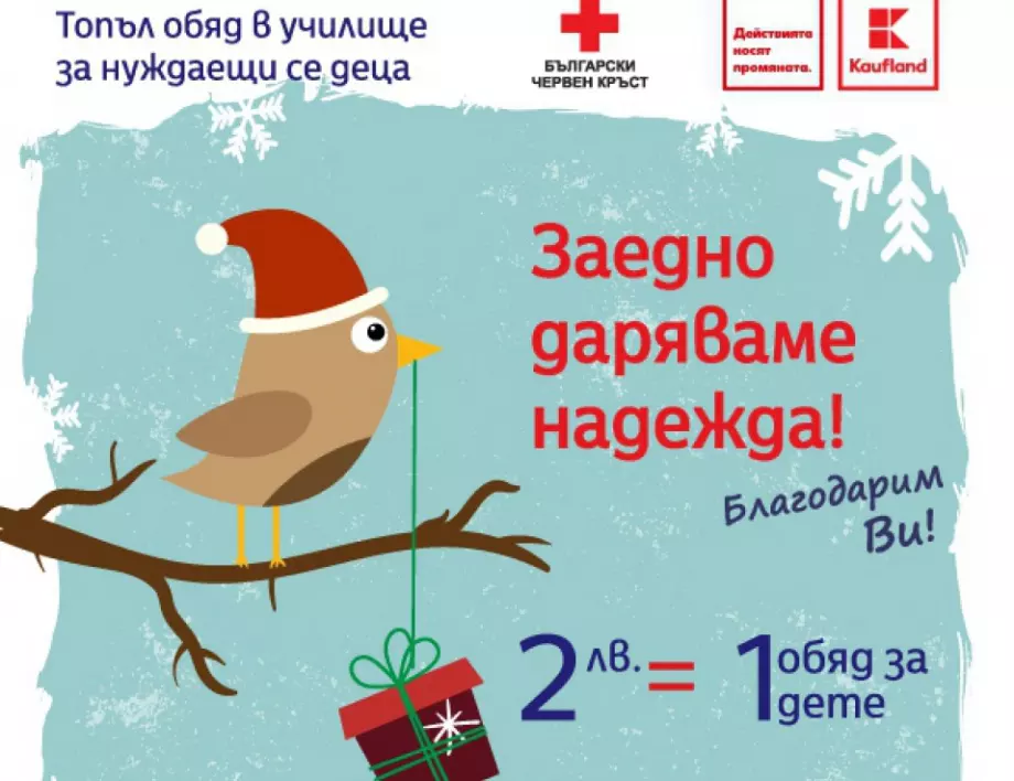 До 14 декември клиентите на Kaufland ще имат възможност отново да направят дарение в специално поставените за целта благотворителни кутии. В предходното издание на кампанията те успяха да съберат рекордните над 27 000 лева. Средствата от инициативата се предоставят за безплатен обяд на деца в неравностойно положение – сираци, полусираци, от многодетни семейства, с трайно безработни родители. По информация на БЧК топлият обяд често се оказва единственият повод част от децата да посещават учебни занятия. Програмата успява да върне в класните стаи повече от 19 000 деца от цялата страна. До момента в рамките на дългогодишното партньорство между Kaufland и БЧК търговската верига е съдействала за набирането на общо 411 065 лева по програма „Топъл обяд“. Тази година компанията и хуманитарната организация разшириха сътрудничеството си и в други области, като една от тях беше поставянето на контейнери за разделно събиране и рециклиране на дрехи и текстил на територията на редица хипермаркети Kaufland в страната.